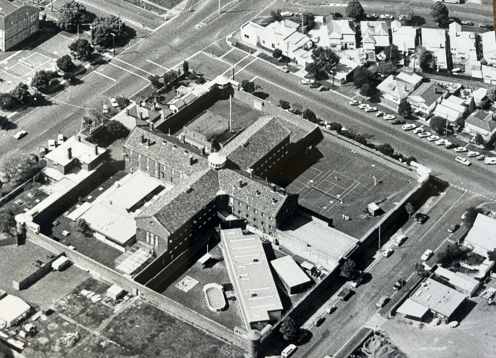 Geelong Gaol aerial view, 1987. January 25, 2026/by Noel Murphy http://noelmurphy.com.au/wp-content/uploads/2016/11/new-logo-grey.png 0 0 Noel Murphy http://noelmurphy.com.au/wp-content/uploads/2016/11/new-logo-grey.png Noel Murphy2026-01-25 23:30:362026-01-25 23:30:36Geelong Gaol aerial view, 1987.